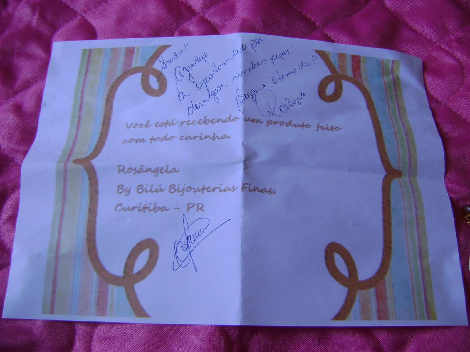 Adorei também a mensagem que a Rosângela me enviou de